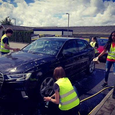 Wir wuschen den ganzen Tag Autos und hatten viel Spass dabei. Es kamen sehr viele Leute. Es kam sogar ein Mann mit einer Limousine. Dieser spendete uns Getränke.