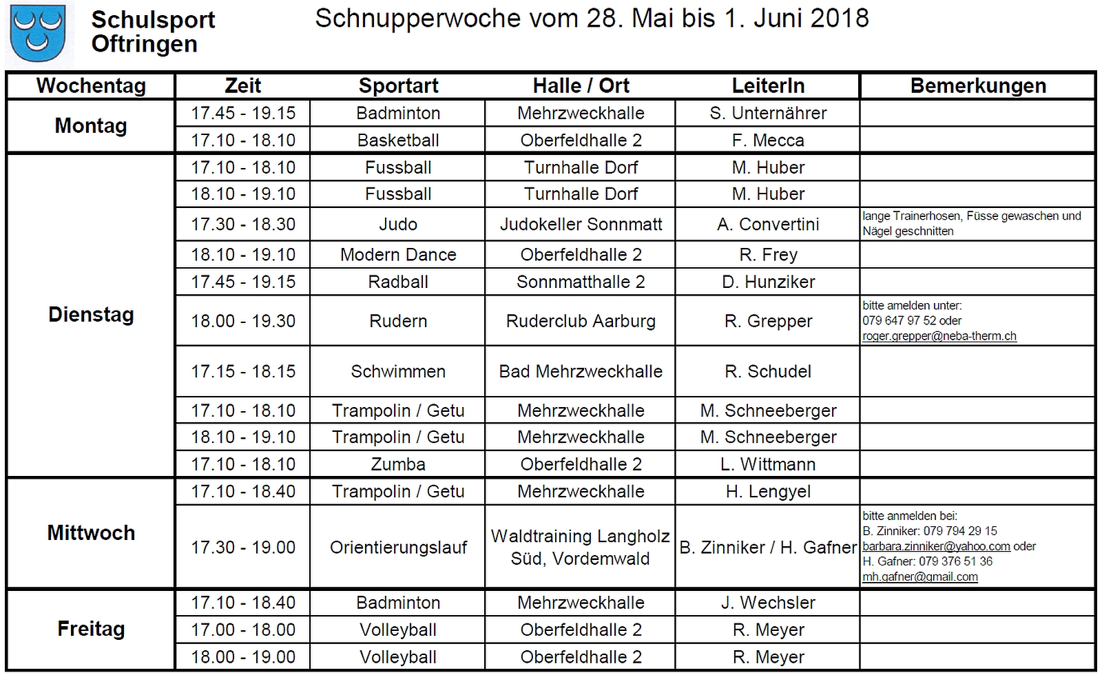Die Angebote des freiwilligen Schulsportes der Schule Oftringen stehen Schülerinnen und Schülern ab der 5. Klasse offen.