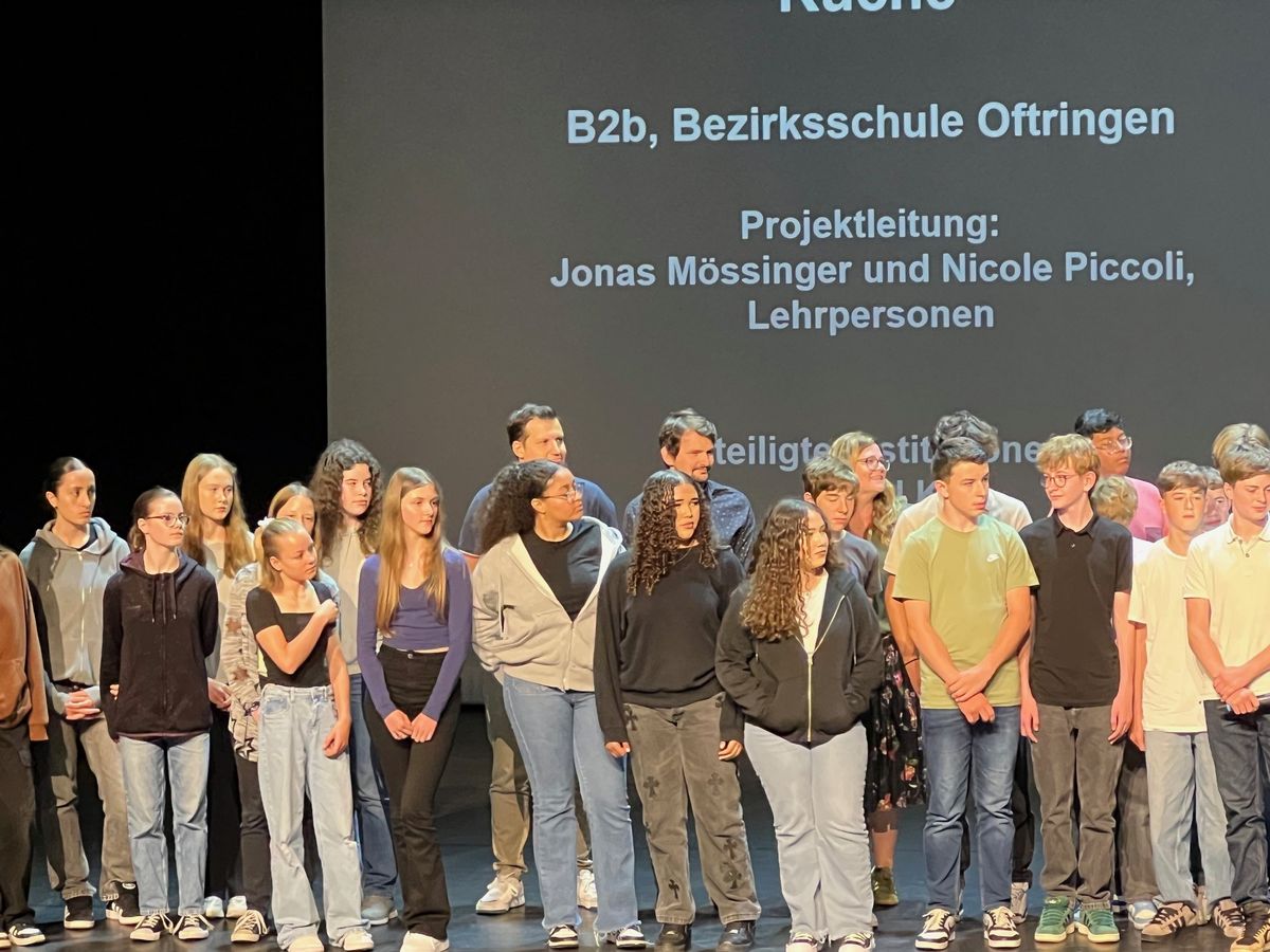 Es freut mich ausserordentlich, dass das Projekt «saftig und würzig» der Bez 2b anlässlich der kantonalen Preisfeier 2024 «Funkenflug» am Freitag, 21. Juni 2024 mit Silber ausgezeichnet worden ist. Es handelt sich dabei um ein Radioprojekt der Lehrpersonen Jonas Mössinger und Nicole Piccoli in Zusammenarbeit mit dem Radiosender Kanal K. Dieses Projekt war nur dank der grosszügigen finanziellen Unterstützung des Kulturfonds der Gemeinde Oftringen möglich.
