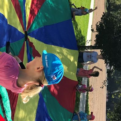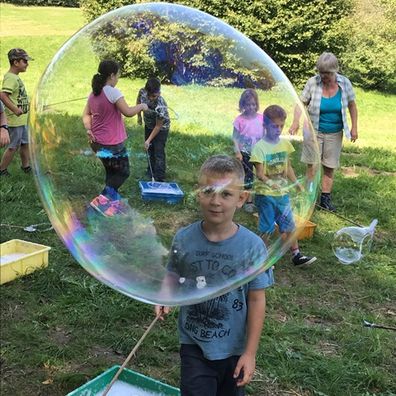 Den Nachmittag bestreiten die Unterstufe und Mittelstufe getrennt. Während die Unterstufenschüler/innen sich an vielen verschieden Spielstationen, wie Riesenseifenblasen, Sackhüpfen, Ballonwettkämpfen und und und vergnügen, spielt die gesamte Mittelstufe „Räuber und Poli“, mit dem speziellen Anreiz, dass auch hier die Lehrkräfte als Polizisten hinter ihnen her sind.