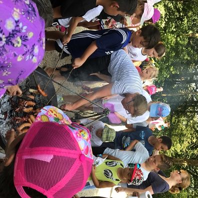 Oben angekommen, es war zwischenzeitlich kurz nach elf, begann das grosse Rucksäcke Auspacken und ob der riesigen Menge an Essbarem, hätte man meinen können, die Kids seien kurz vor dem Verhungern. So konnten es einige kaum erwarten, ihre Würste auf den bereits vorbereiteten Feuern zu bräteln - gar nicht so einfach bei so vielen Würsten, seine eigene nicht aus den Augen zu verlieren.