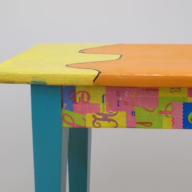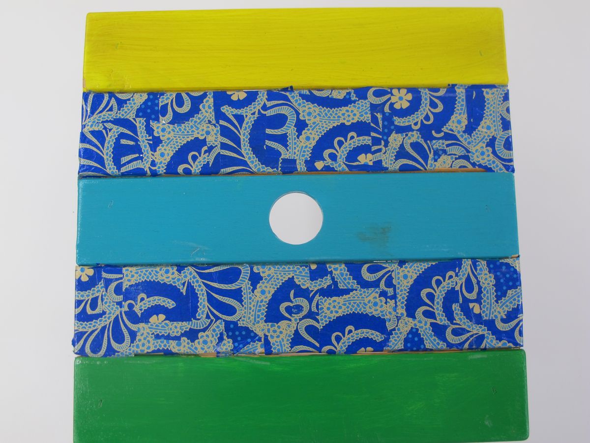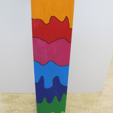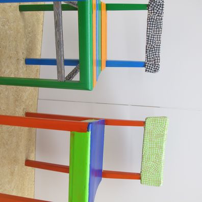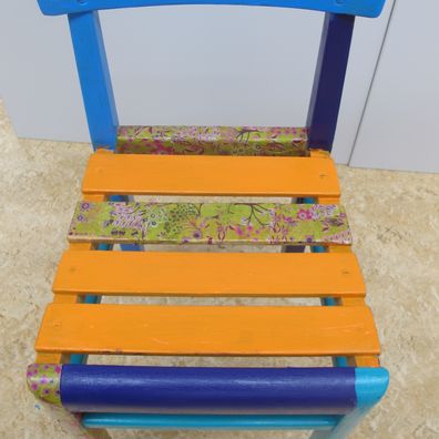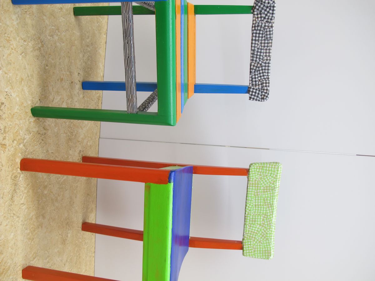 Stundenlang hat die Klasse 3a das Holz feingeschliffen und die Neubemalung geplant. In Gruppenarbeit wurden die Sitzgelegenheiten sorgfältig angemalt und mit Décopatch verziehrt.