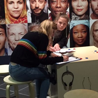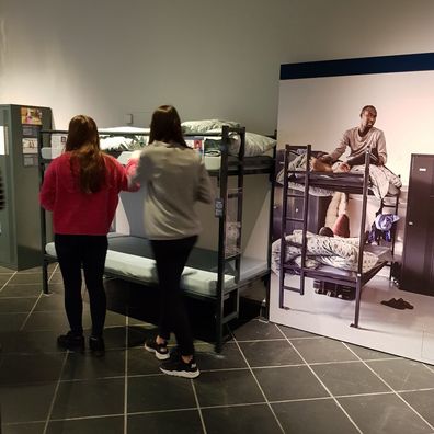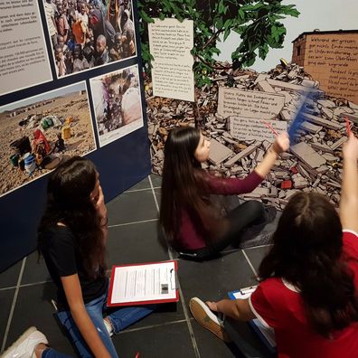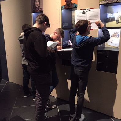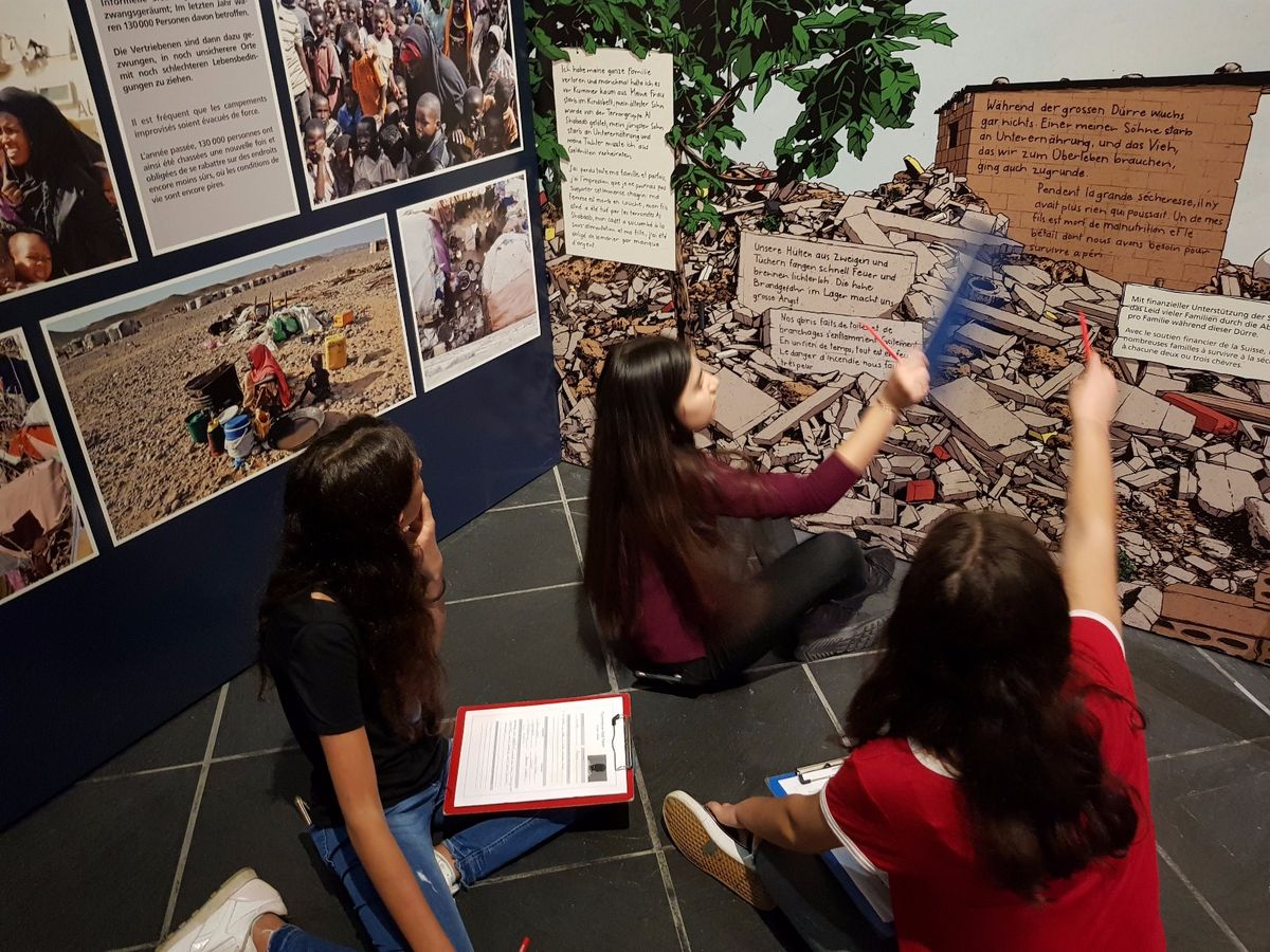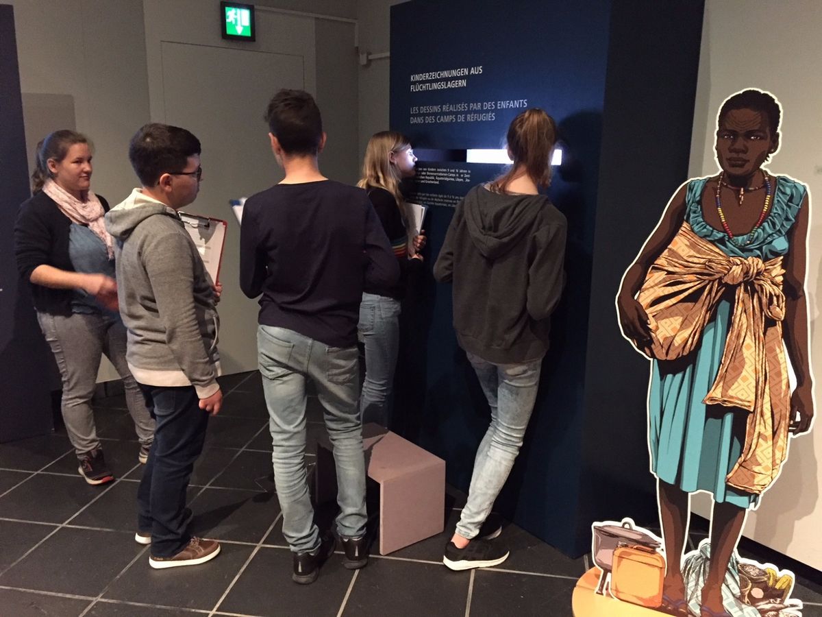 Anschliessend bekamen wir unseren Auftrag, denn wir vertieften uns in die Geschichte eines Flüchtlings und sammelten in der Ausstellung mehr Daten dazu um es zum Schluss vor der Klasse zu präsentieren. Wir arbeiteten in Gruppen und konnten die Ausstellung dadurch noch genauer anschauen. Dadurch erhielten wir einen Einblick in das Leben der Flüchtlinge, der schon sehr traurig war.