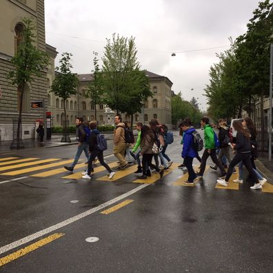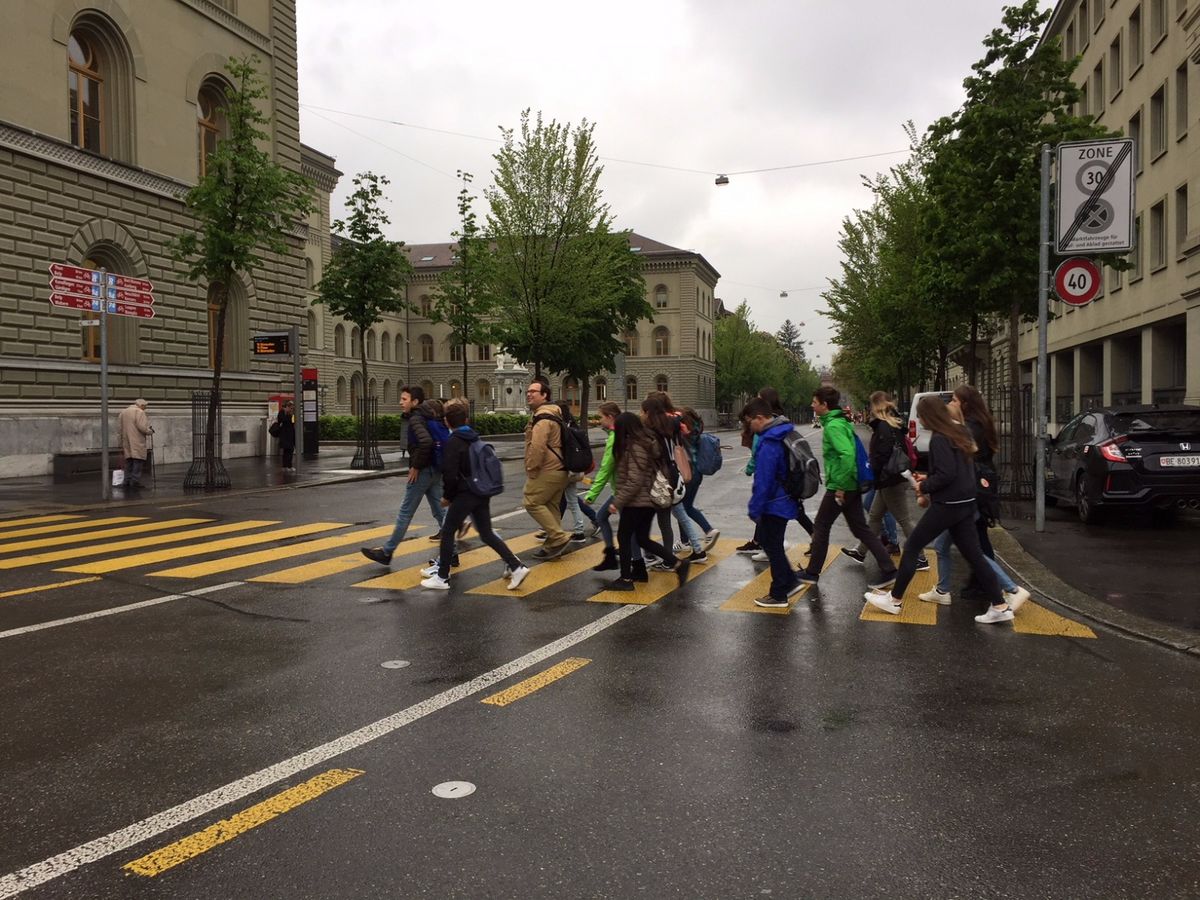 Es war Donnerstagmorgen und wir waren alle müde, aber auch neugierig. Um 08.32 Uhr fuhren wir dann los Richtung Bern. Die Strecke ist relativ kurz und darum ging die Fahrt schnell vorbei. Als wir in Bern ankamen, trafen wir Frau Jost, Frau Nydegger, Frau Rindlisbacher und Frau Klöti, die zusammen mit Herr Studer und Frau Mahler (unsere Klassenlehrerin) unsere Begleitpersonen waren. Im Naturhistorischen Museum, sahen wir einen sehr traurigen und berührenden Film über Flüchtlinge, die ihre Geschichte schilderten. Vor allem der Fluchtweg, den sie auf sich nehmen mussten, hat uns sehr berührt.