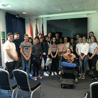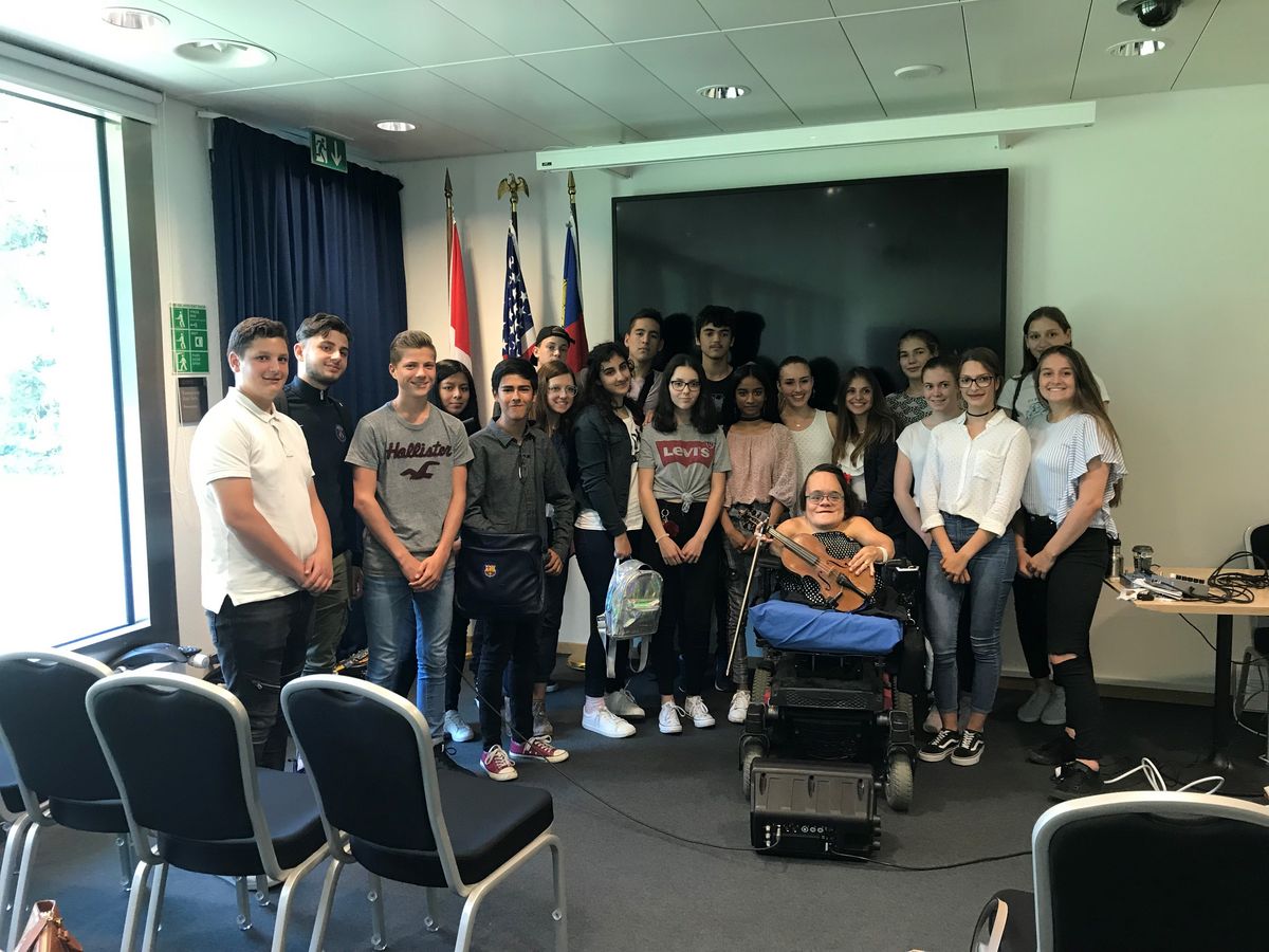 After spending a few minutes with her, we realized how much it means to her that all people are treated the same. She said that everyone should try to make the world a little bit better for people with a disability. Of course, we share her opinion. At the end, we even sang with her; that was really cool.