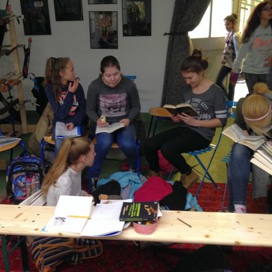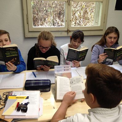 Nach der theoretischen Einführung durfte sich die erste Achtergruppe fürs Üben bereit machen. Die restlichen Schüler mussten sich noch gedulden. Um die Wartezeiten zu überbrücken, hatten alle die Hausaufgaben und die Deutschlektüre mitgenommen.