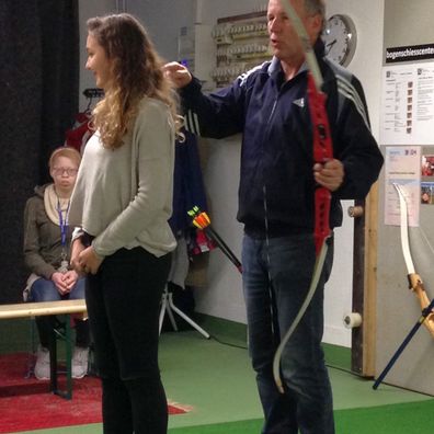 Danach wurde uns die korrekte Haltung gezeigt, die einen beim Bogenschiessen zum Erfolg führt. Der Buchstabe „T“ ist dabei sehr wichtig, denn genau eine solche T-Haltung sollte man beim Bogenschiessen einnehmen. Wir haben gemerkt, dass der Sport Bogenschiessen nicht nur Kraft, sondern auch Disziplin und Konzentration erfordert. Auch sehr interessant ist, dass sich die Sehne beim Entspannen wie ein Violinschlüssel bewegt.