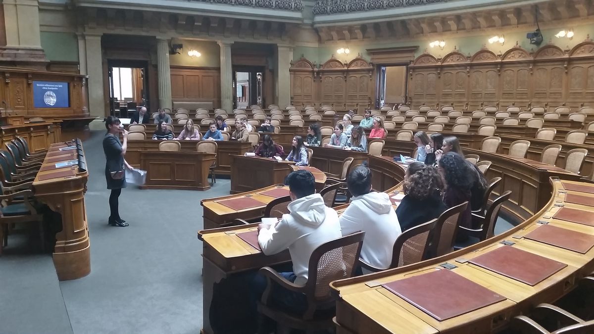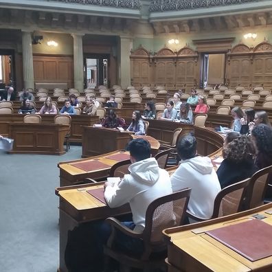 Im Vorfeld hat sich die Klasse im Geschichtsunterricht in 3 Kommissionen zu den Themen «Privatsphäre, Waffenpolitik und Drogenpolitik» auf die Diskussion im Nationalratssaal in Bern vorbereitet.