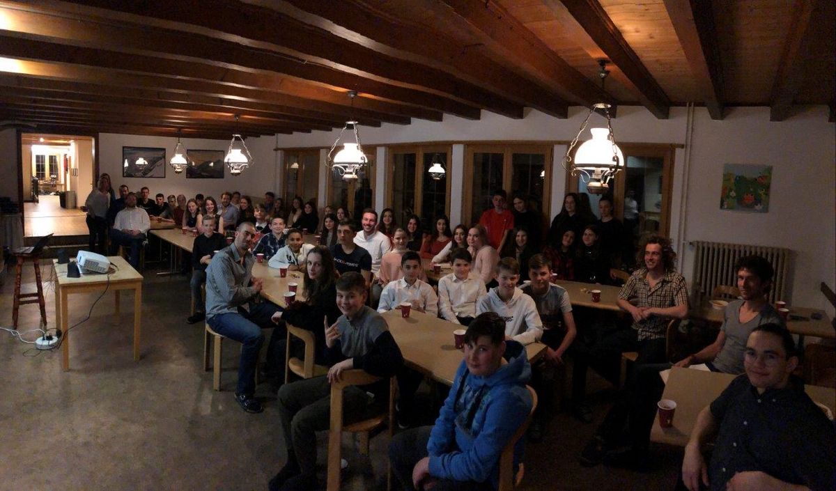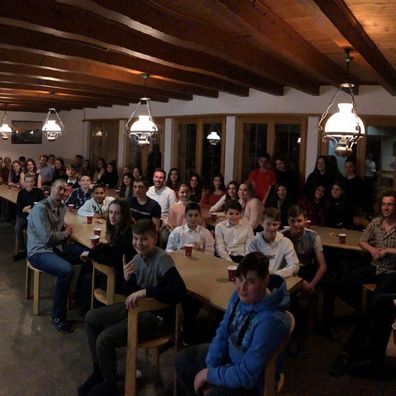 Am Freitagabend stieg die grosse Abschlussparty. Es wurden die Videos, zum Thema Mord in Madrisa, der einzelnen Gruppen gezeigt. Alle waren sehr lustig und interessant. Zwischen den Videos spielten wir immer wieder Minispiele. Danach wurde Musik gespielt und man konnte dazu tanzen.