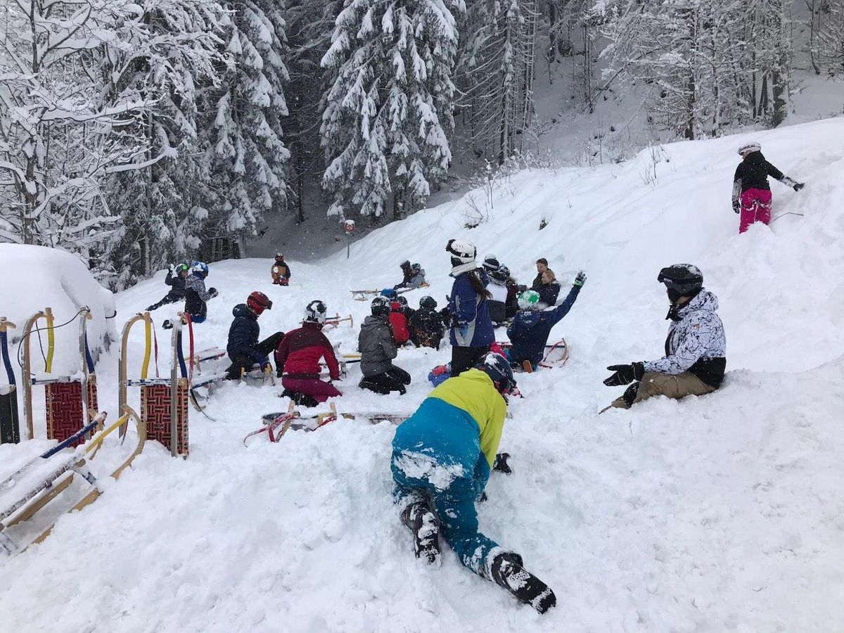Am Mittwoch wurden wir eine Stunde später als üblich geweckt. Während dem Morgenessen mussten wir uns zwischen Schlitteln oder Ski-/Snowboardfahren entscheiden.