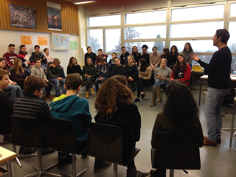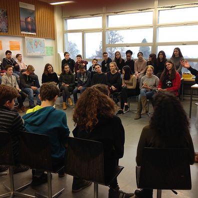 Am 18. Januar 2018 besuchte der Slam Poet Simon Libsig unsere Klasse, die Bez 2A im Deutschunterricht. Er stellte sich ganz in Reim-Form vor, was uns sehr beeindruckte, und überraschte uns dann mit einer fetzigen Geschichte aus seiner Kindheit. Anschliessend konnten wir uns auch selbst spielerisch im Reimen üben.