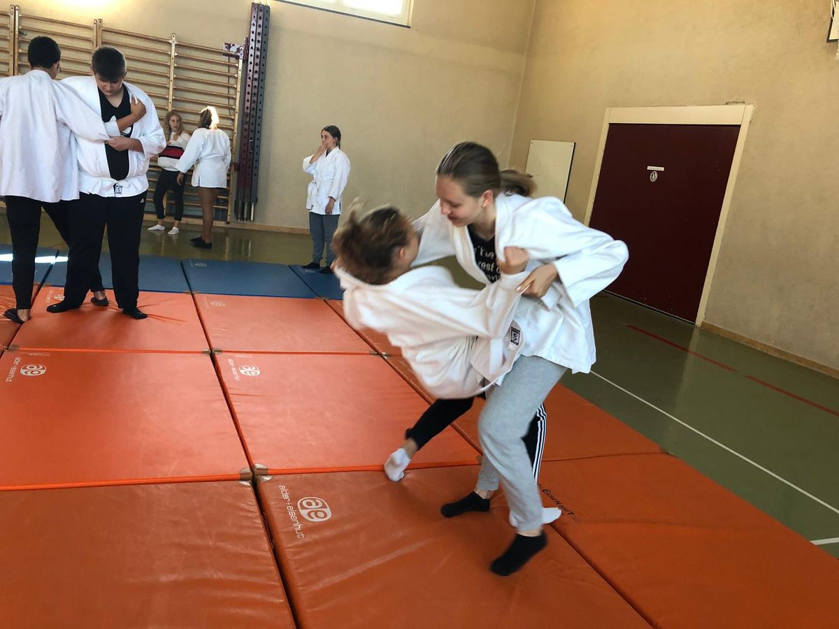 Das Sportprogramm am Morgen war für alle drei Jahrgänge unterschiedlich. Die erste Oberstufe absolvierte einen Orientierungslauf auf dem Schulhausareal, die zweite Oberstufe meisterte in Zofingen einen Duathlon mitsamt joggen und Velo fahren. Die dritte Oberstufe konnte aus einem abwechslungsreichen Angebot an Workshops auswählen. Zu den diesjährigen Workshops gehörten: Rudern, Haidong Gumdo, Shuffle Dance, Yoga, Tennis und auch Judo.