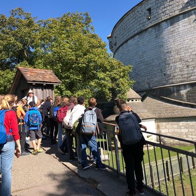 Gemeinsam ging es nach Schaffhausen. Das Ziel war der Rheinfall, der spektakulär war und mit grossen Augen betrachtet wurde. So gab es auch noch eine 15-minütige Live-Show mit anschliessender interessanter Führung durch den Munot, dem Wahrzeichen der Stadt Schaffhausen. Alle Klassen der 1. Bez reisten gemeinsam an diesem Tag. Es war eine schöne Schulreise. Am Schluss durften wir auch noch eine kurze Zeit alleine durch die Gassen der Stadt ziehen.
