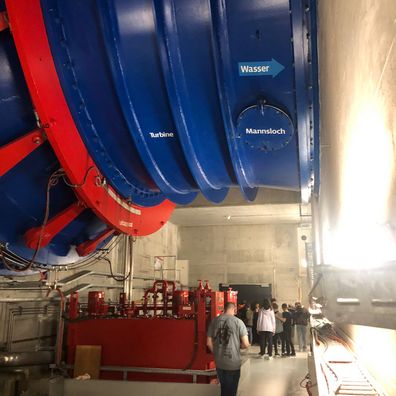 Im Flusskraftwerk haben die Klassen eine lehrreiche Führung geniessen können. Dabei konnten wir die 6 Meter grosse Turbine betrachten. Nach der Führung durften wir zusätzlich ein Quiz lösen. Wenn jemand gut aufgepasst hatte, konnte man sogar einen Preis gewinnen.